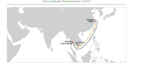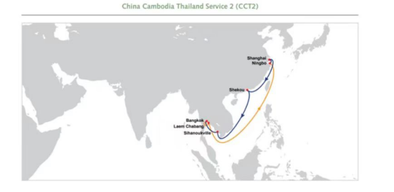 The CCT2 port rotation will be Bangkok, PAT - Laem Chabang - Ningbo – Shanghai - Shekou (China) - Sihanoukville (Cambodia) - Bangkok, PAT